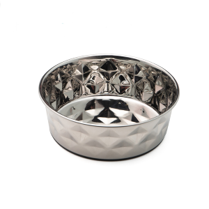 Ciotola in acciaio inox Leopet modello "Diamond" molto pratica e sicura grazie alla sua base realizzata con materiale antiscivolo.