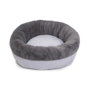 Leopet Idra è una cuccia a forma di ciambella in soffice pelliccetta e camoscio o velluto, con cuscino estraibile e reversibile, imbottita con morbida fibra di poliestere.