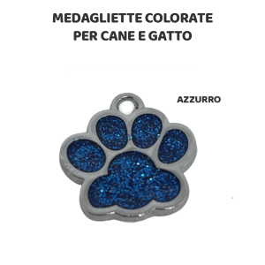 Medagliette in metallo a forma di zampa con glitter adatte sia a cane che gatto.