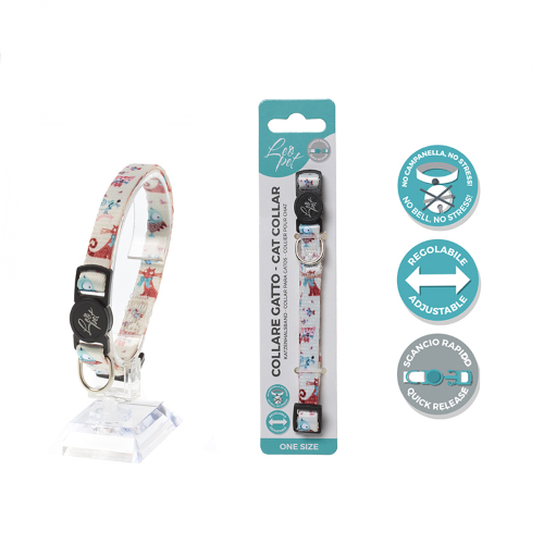 Regolabile, dotato di sgancio rapido e senza campanella che genera stress nel gatto.